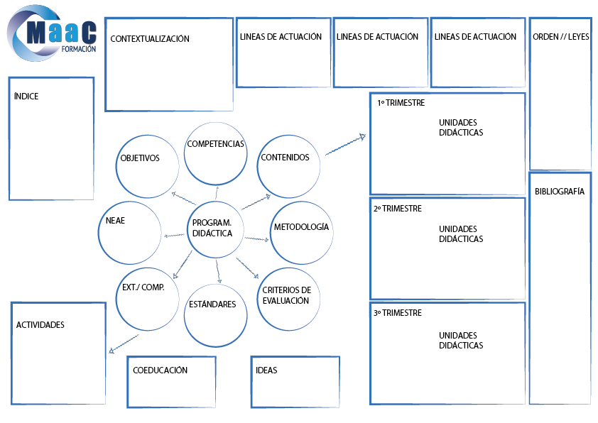 Lo más importante, es conseguir una buena organización espacial, y que todas sus partes estén equilibradas. Siempre deben estar adaptadas a tu especialidad y estilo, contar con tu sello personal, y estar muy relacionada con tu programación didáctica escrita.