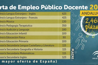 De la Calle ha señalado que Andalucía vuelve a ser la comunidad que más plazas saca y ha indicado que no están preocupados por un «efecto llamada» de ciudadanos de otros territorios que decidan optar a esta oferta de empleo público, ya que varias comunidades también van a convocar en las mismas fechas una oferta pública de empleo.
