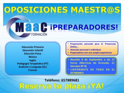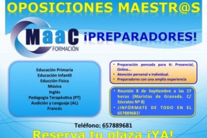 Llegado septiembre empieza la época de propósitos y nuevos retos. Es decir, ¡ha comenzado el curso! Este año está previsto que la convocatoria en Andalucía superen las 2000 plazas para el cuerpo de maestros. Por ello, para todos aquellos que tengáis en mente prepararos la oposición al Cuerpo de Maestros o Secundaria, comentaros que en MaaCFormación hemos empezado a trabajar con ilusión para dar respuesta a todas tus pretensiones y necesidades.