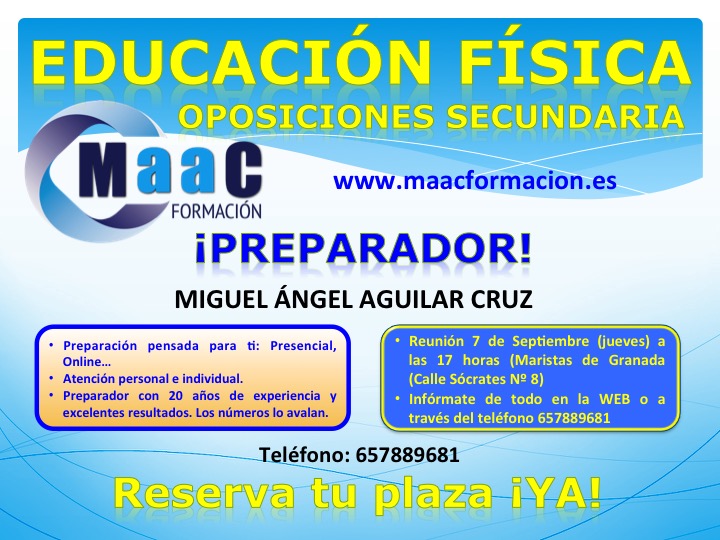 Por otro lado, comentarte que si no conoces la web y plataforma que se ha “montado” con el objetivo de dar un servicio de mejor y mayor calidad, te animamos a que la visites y le eches un vistazo. Accede a www.maacformación.es. En ella podrás encontrar material gratuito muy interesante (Por ejemplo, la guía gratuita del opositor), videos tutoriales explicativos gratuitos, etc.